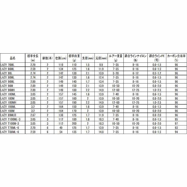 画像は「レイジー t76ml-6」 ダイワから発売中の「レイジー」にt96m-6、t106mh-6の2機種が追加された。 軽量・高感度なブランクを搭載しつつも、コスメを最低限に留めたことによって高いコストパフォーマンスを実現したシーバスロッド。MHパワーのシーバスロッドおすすめ8選 シマノルアーマチック(S80MH) シマノディアルーナ(S100MH) ダイワレイジー(96MH) シマノルナミス(S106MH) ダイワラブラックス AGS BS(72MHS) テイルウォークソルダイワレイジー 入荷致しました。 価格は1万5千円ほどで、 釣りを趣味として始めたい方や、 初心者からステップアップしたい方にオススメです。